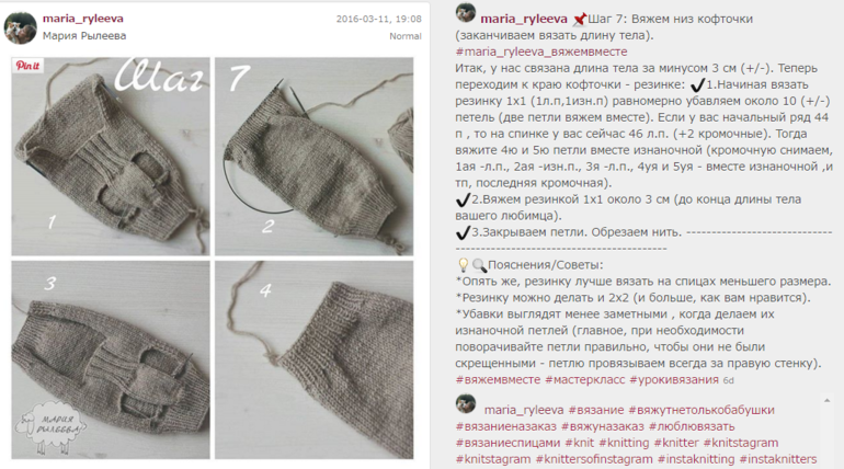Мастер-класс из инстаграма от Марии Рылеевой по вязанию свитера для собачки