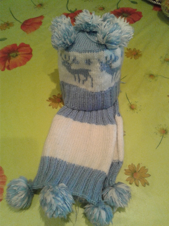 Шапочки, шарфы, варежки для детейдевчата вяжу сынули шапки под каждый зимний комплект.Какой то рисунок комбинирую сама .А что то беру из маминого старого журнала.