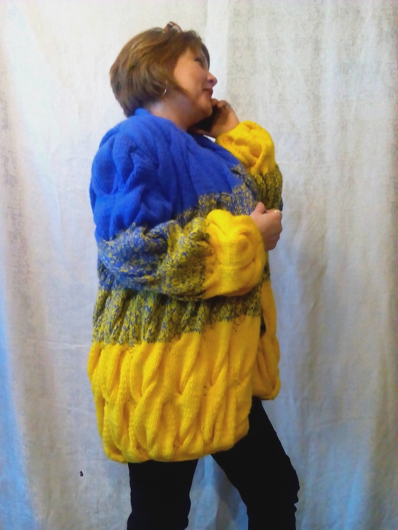Я тоже не маленькая по размеру😄,но себе уже тоже вяжу,ещё ярче и ещё весенней,морская волна & малина,сама я шатенка жгучая и люблю все яркое