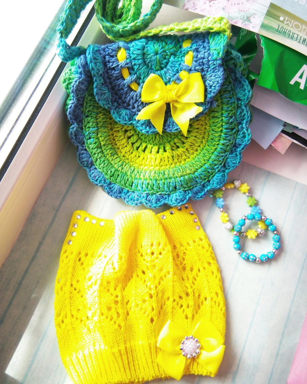 Шапочки, шарфы, варежки для детейВ ПРЕДВЕРИИ ЛЕТНИХ ДЕНЬКОВ. ГОТОВЛЮ КОЛЛЕКЦИИ вот например такая яркая солнечная коллекция сумочка шапочка и браслетики!