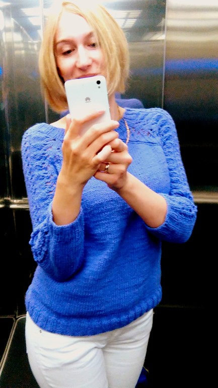 Частенько лазая по интернету в поисках красивых вещиц, связанных спицами или крючком, нашла этот чудесный пуловер. Он меня очаровал с первого взгляда, в тот же день сбегала за пряжей и наколдовала себе эту прелесть!