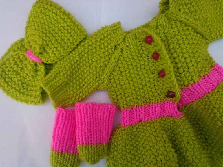 Добрый вечер.Вязала без схемы с головы.Вязание начинала регланом с верху.Первый комбез лицевой гладью и изнаночной,а платье узором рис.