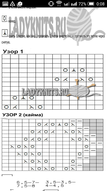 Узоры, схемыДобрый вечер девочки, нашла я наконец-то платье которое хочу связать, но никак не могу понять схему, как вяжутся изнаночные ряды и как провязывать с изнанки накид. Вот схема