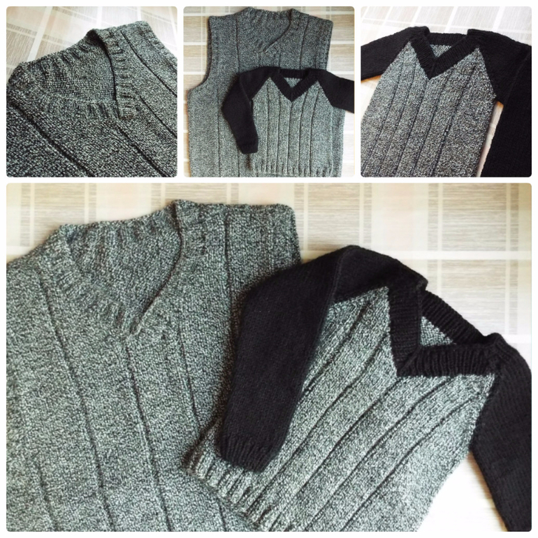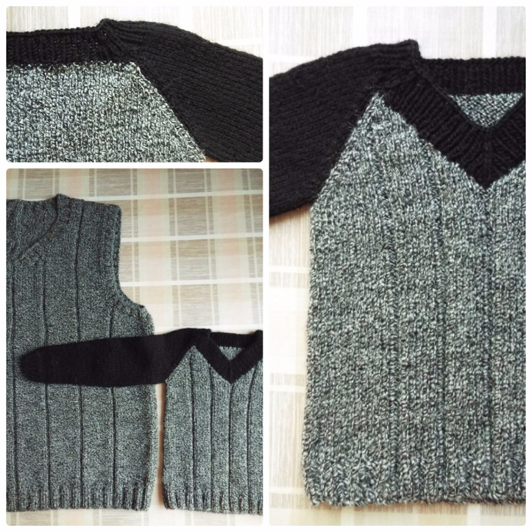 Свитера, жакеты для детейКак-то совершенно случайно получился у меня комплект мужу и сыну. Сначала связала мужу жилетку, давно уже, к слову сказать. Но сын её дома стал носить, нравится ему быть как папа. В итоге у моего мальчишки появился и свой, сурово-взросло-мужской, только не жилет, а джемпер) Жилетки нам и одной хватает)))