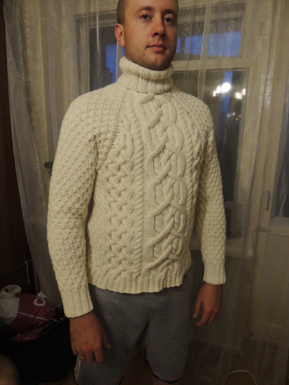 Очень красивый свитер!!!!! Узоры так здорово подобраны! Мне кажется я такую косу в ютубе видела, ну или наподобие, прям очень нравится! Ну пока не по меряешь - не узнаешь как сидит)