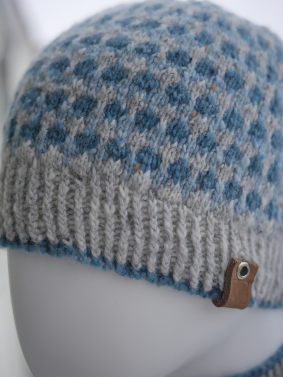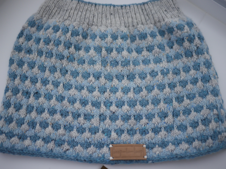 1. Arte, Merlin Шапка связана на спицах, снуд на машине. Видно, как один и тот же узор имеет нюансы при вязании руками и не руками. Резинка 1х1 руками эта пряжа не держит вообще (вшивала резинку потом), машинная резинка худо-бедно форму держит