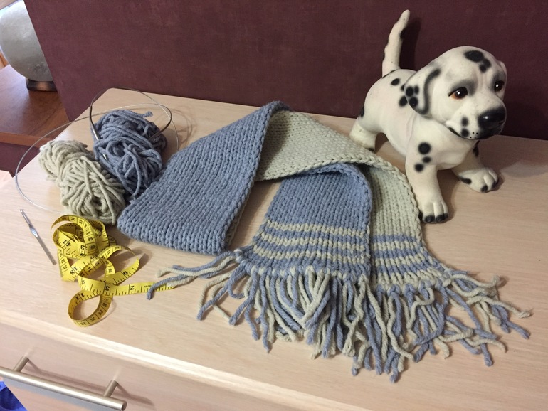 В очередной раз убеждаюсь, чем проще исполнение, тем лучше смотриться результат. Ну и пряжа толстая, все в связалось как-само по себе)))
