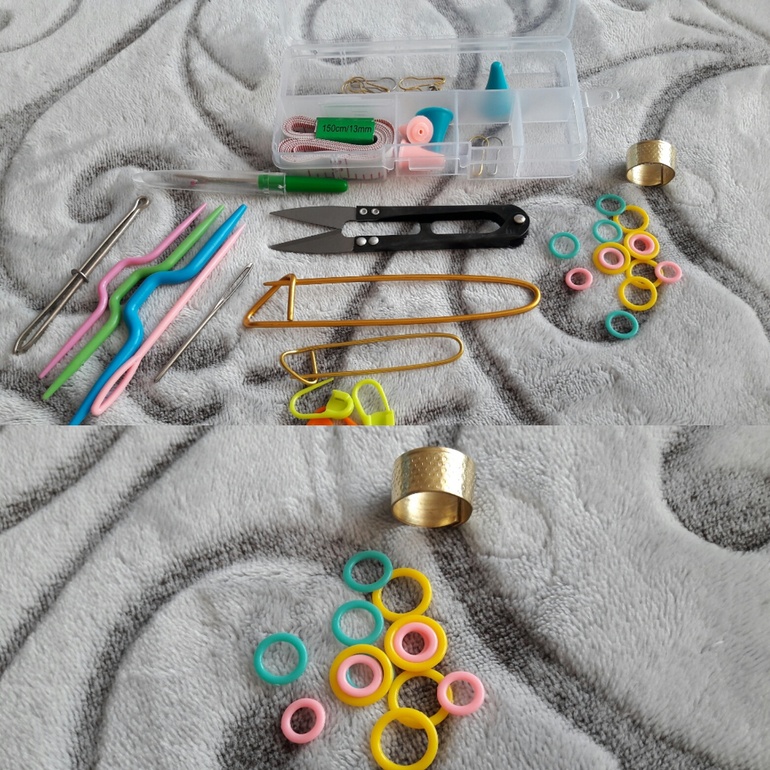 Вот такой наборчик я получила с Алиэкспресс. Так как в вязании я ещё новичок, не поняла назначения вот этих колечек (пластмассовых и золотистого). Девочки, кто знает для чего они подскажите пожалуйста?