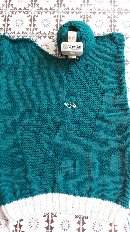 Вяжу сыну жилет с теневым узором. Просто влюбилась в пряжу - jeans, хлопок+полиакрил.