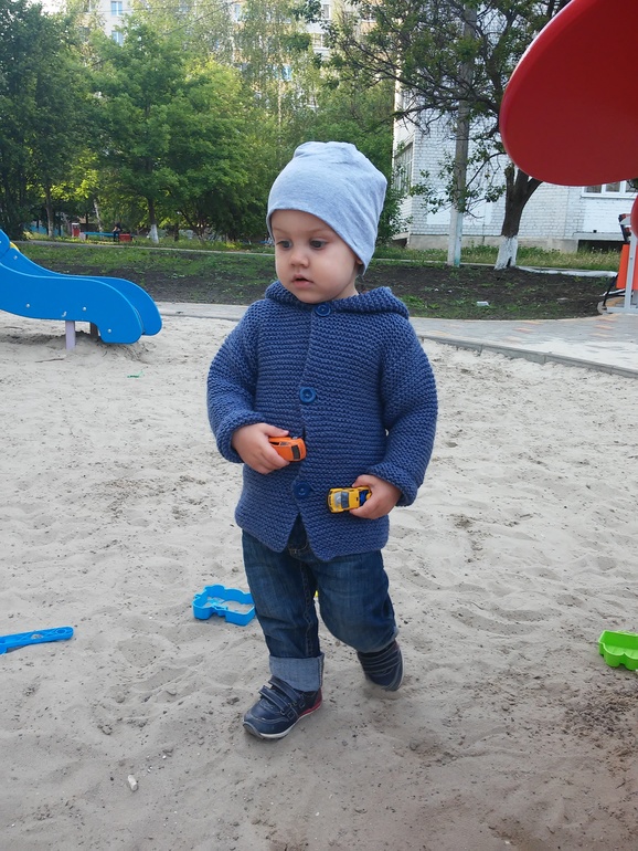 Связала в марте сыночку кардиган. Но одевали мы его весной всего пару раз. Надеюсь еще на осень пригодится.
