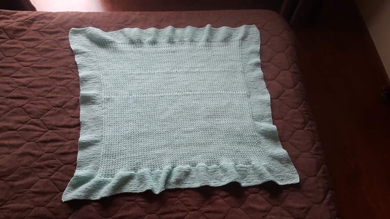 Вязала детский плед. Платона вязка по краям. Потом рисунок