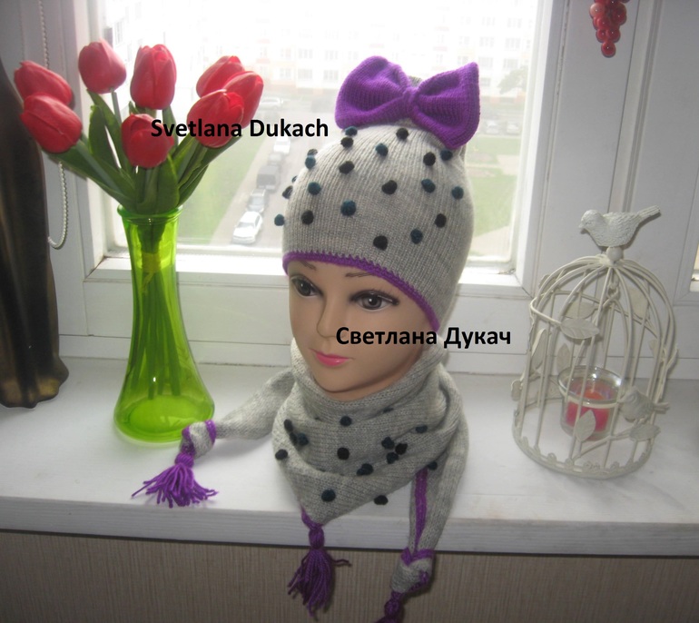 Этот Комплект вязался для Елены из Г... Шапка и Бактус на 2 оборота
