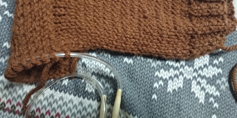 Я так поняла, что 12 петель набираем после центральной вставки, потом дополнительно под подбородком набрать 7 петель, потом еще 12 до центральной вставки, а потом там еще петли в центре, где коса нужно 2 вместе провязать. Возможно, да, не в каждую кромочную, через 1, чтобы стянуть немножко.