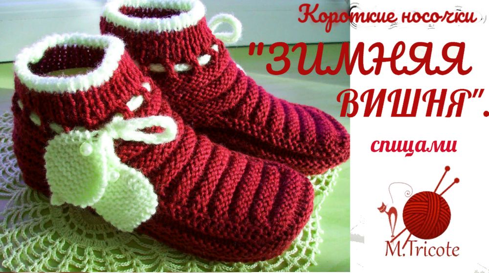 Короткие носочки "ЗИМНЯЯ ВИШНЯ".Спицами.