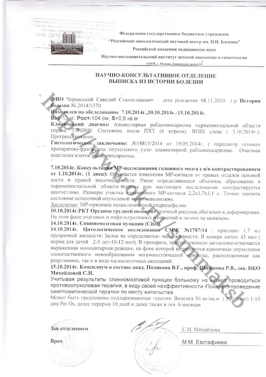 достаточного количества анализов и информации о состоянии Савелия…мы дали свои