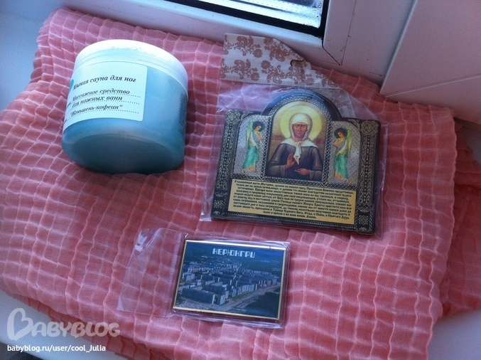 шарфик, магнитик , икона Матроны и масочка для ножек! Все заняло своё место!