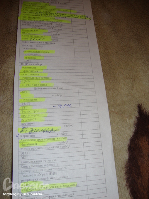 Согласна с Сашей надо смотреть на сайтах клиник. Вот например одна из питерский, там есть лист обследования пациента для М и Ж, скорее всего в вашем регионе примерно тоже http://www.avapeter.ru/reference/