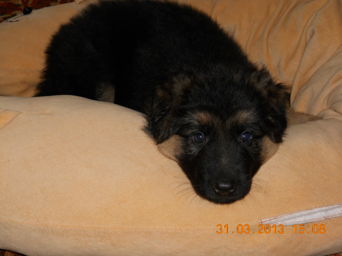 Овчарка немецкая, длинношерстная. Подрастёт понятно будет, сейчас ещё на колобка смахивает)))