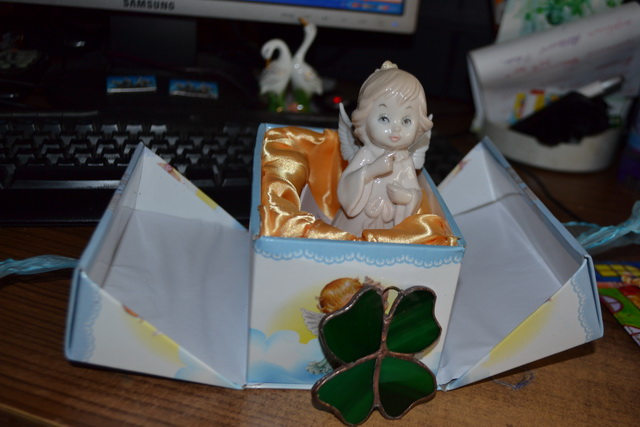 Эличка,мне все очень понравилось ,четерехлистник теперь лежит передо мной ,вместе с моими аистами и уже с новым желанием!!!А коробочка вообще бомбовая