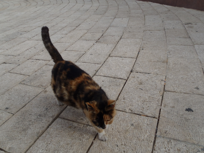 А первым встречающим была вот эта беременная кошка. Я погладила ее.