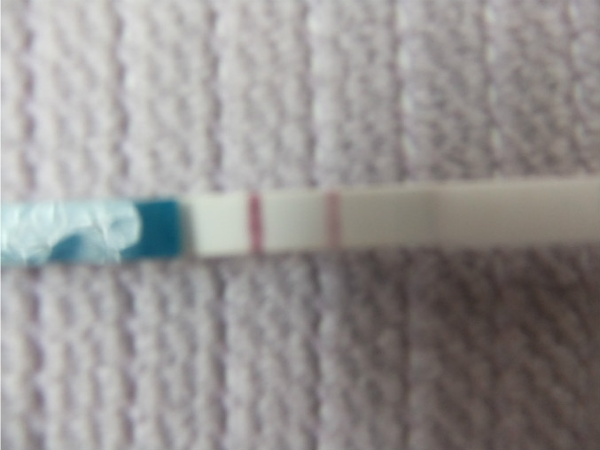 качество не очень, но главное полоску то видно! Как вы думаете моя? Укол прегнила был 4 апреля, сегодня 9дпп, тест сделала во второй половине дня, не могла удержаться до утра!