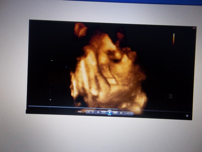Вот и сходила я сегодня на узи. Доча уже весит 2521,а 13 .06 весила 2300.я худею,а она растёт.правда вы мне сказали,что ребёнок своё возьмёт.Мне понравилось.Хотя врач очень переживала,что может ничего не получиться т.к.срок уже большой.она мне сказала,что лучше зодить примерно до 30 нед.там и вод больше и активность ребёнка видно лучше ,места много.А у меня срок уже 34,2 дня по узи,а по развитию 34,3.короче в норме.правда доченька одной ручкой закрыла половину лица,как мы её с врачём не просили.Она решила,что типа нечего на меня смотреть пока,скоро насмотритесь.но всё равно было видно как она улыбается(на фото),сосёт ручку(не пальчик),показала нам все свои интимные прелести.лежит она правильно,головкой вниз и спинкой вперёд.Мне там поставили срок 1.08.максимально я должна родить до 15.08.а минимально 10.07.это будет доношенный ребёнок.Дали штук 10 фоток идиск с записью.Там можно сделать стоп кадр и напечатать любое фото.Короче всё СУПЕР!!!!!Заразный ааапппччччииииххххх на всех желающих!!!!