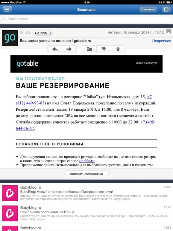 И так я бронирую столик в ресторане Чайка ( Итальянская 15), вход через Гранд-Палас. На имя Ольга Подольская.