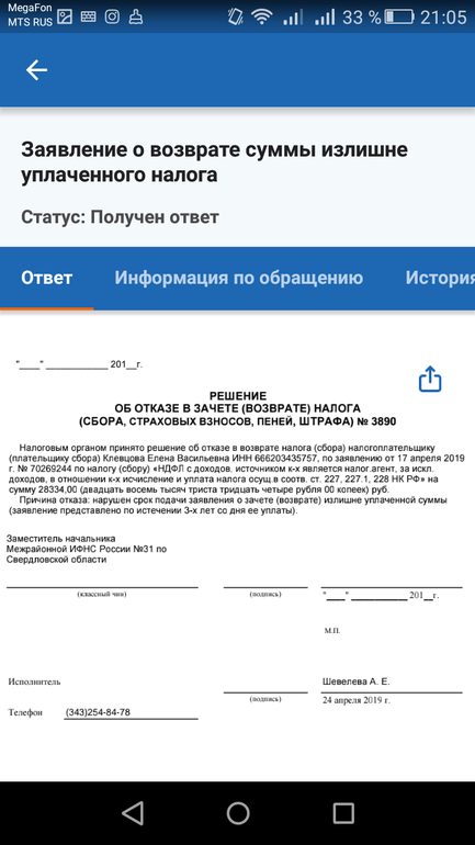 Доброго времени суток !!! Помогите пожалуйста !!! Я подала 3 ндфл за 2015 год, в начале декабря 2018. За лечение. По результатам к. проверки мне начислили деньги 28000 с копейками.... Я подала заявление на зачисление денег мне на счет. Пришел отказ, т.К. я подала заявление по истечению трех лет ........ Правомерно ли мне отказали, или есть смысл в суд обращаться ???