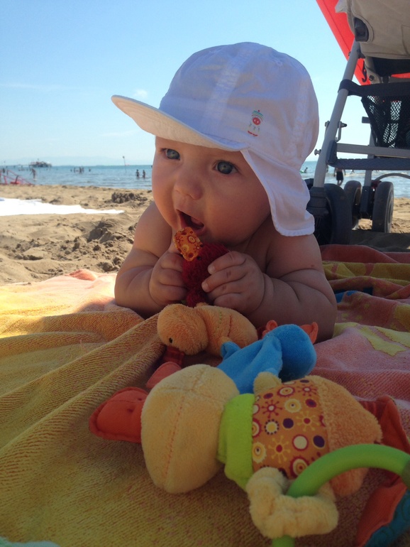 2 июля мы отбыли в Италию на три месяца и здесь у нас уже вылезло 2 зуба, один в 5м8д и второй - в 6 и 4д... И слава Богу без особых проблем, капризил чуть больше и звуки новые издавал)))