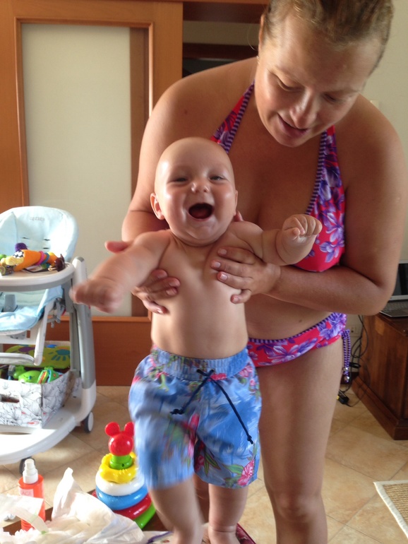 Ну о казусе - вчера выпили много компота из черносливе, так как стул раз день а то и по двое суток без него... Утром как приличные оделись нарядно - бодик, шортики, носочки, на улице прохладно-плюс 19... Собираясь, взяли один памперс, так как госпиталь в 10 мин езды... Едем... Ребенок поет песни и начинает какать, мы с няней от этого радостные))) приезжаем, вынимаем - мама дорогая!!!! В какашках все - бодик, шорты и кресло.... Из приличного остались только носки)))) зашли в процедурный - персонал поглядывает на нас с улыбкой, конечно - на дворе прохладно, а у этих безумных русских ребенок голый, но в носках.... Ох мы и смеялись)))) но как объяснить почему так я не смогла, не знаю таких слов по итальянски)))