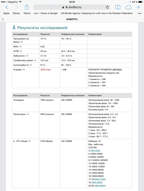 Гормоны норма ( учитывая поддержку). У меня выше были. Правда изначально двойня была. Очень и очень высокий д- димер. 0,4 мало!! Но все с врачом. Препарат серьезный. Очень настойчиво бомбардируй врача смс и звонками даже. День или полдня могут стать критичными