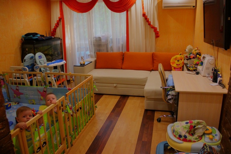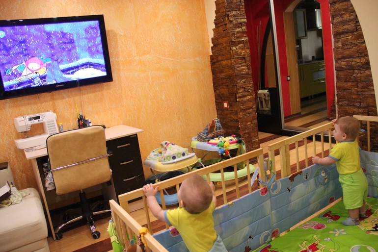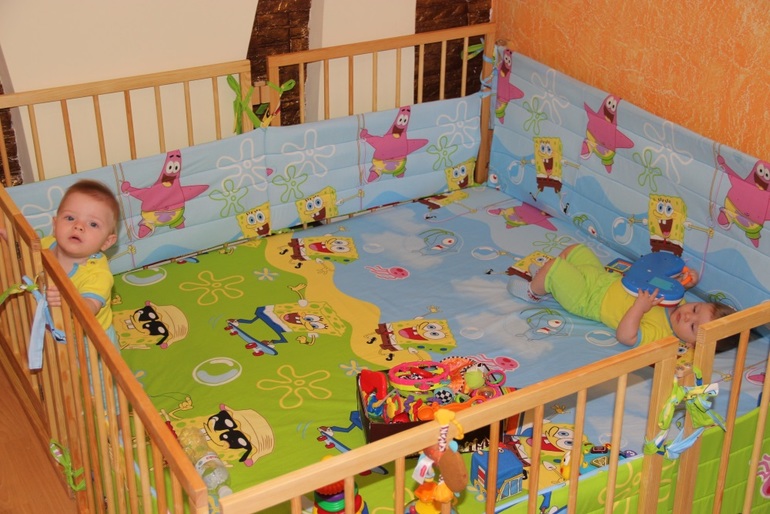 Первую ночь двигали мебель пока нашли где разместить его... и муж клепал каркас, ну а вторую Марина включила швею мотористку и нахедмеела))) Манеж 2Х2, борты с какого то там экологически чистого дерева омытого слезами девствениц))) внизу матрас широной 10 см, двухсторонний. мальчишки бегают по твердой стороне. ну и бортики защитные, внутри паралон 10 мм, натянуты донельзя им так удобней вставать)))) Теперь некогда наша просторная квартира выглядит немного захламленной.. но что поделаешь, зато руки свободны)))