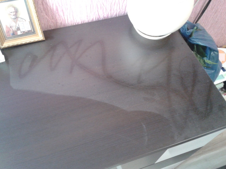 на ваш суд!!! Несколько дней было не до уборки, утричком решила прогенералить все и тут эта надпись...... Я одна вижу, что от иконы Николая написано "ОТЧЕ"??? Оно не просто пальчиком написано, там аж тоненькая царапина))) КАК??? Пол дня решалась стереть ее.........аж мурашки, мягко говоря))) У кого какие мысли??? Может в церковь сходить??? А так вообще весь месяц волшебный: то надписи, то сны....