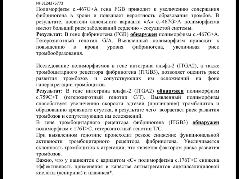 Ну и гематолог меня тоже "порадовал". Сдавала я анализы на полиморфизмы системы гемостаза, и нашли у меня их несколько....