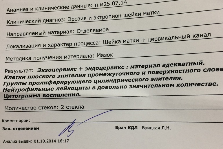 А еще сегодня пришел мазок из шейки и цервикального канала.