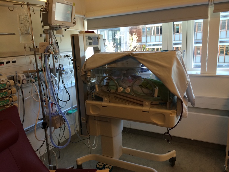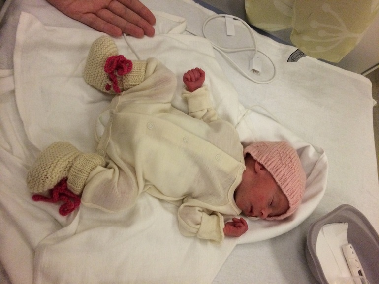Мне сразу же предложили взять Веру на грудь, тк метод кенгуру очень важен для недоношенных деток. Они тогда быстрее и здоровее растут. Я, конечно, согласилась. Ее осторожно достали из кювеза, вместе со всеми проводами, положили мне на грудь, накрыли пледиком. (Кстати, несколько слов о пледиках и тд. Когда-то какая-то пара потеряла недоношенного ребенка в реанимации и после этоо оранизовала фонд помощи родителям недоношенных деток. Среди прочего, волонтеры сами вяжут шерстяные крошечные вещички для крошечных деток. Нам отдали несколько пледиков, шапочки, носочки. Безумно трогательно. Ведь нам это очень нужно, а размеров на таких крошек не найти. Мы этим всем пользуемся в больнице и заберем с собой домой). Пока ее перекладывали, я увидела какая она на самом деле маленькая, а лежа на груди вообще почти ничего не весит. Все это было так странно, волнительно и нежно. Пролежали мы так пару часов. А потом уже стало очень поздно и мы покатились в палату. С этого дня муж стал жить со мной в больнице. В палате стоит вторая кровать для пап. Ему как и мне положен оплачиваемый отпуск по уходу за больным ребенком до тех пор, пока ребенок подключен к ивл или есть другие осложнения. (Мне положен этот отпуск вплоть до выписки). Вера была на ивл первую неделю. Но потом я попросила больничный в родовом для меня (тогда по закону я типа не могу ухаживать за больным ребенком и тогда папа может продлить свой уход и продолжать не ходить на работу, быть все время в больнице с нами, хотя если бы он и ходил на работу, то все равно жил бы смнами в больнице с бесплатным питанием и тд). Могу сказать, что эти дни с мужем и с Верой в больнице стали самыми счастливыми в моей жизни. Как ни странно. Я увидела мужа совершенно с другой стороны. Мы стали ближе и еще роднее. Он очень помогал мне психологически с моим молоком, молоотсосом и тд, очень с энтузиазмом и любовью подошел ко всему, что связано с Верой, ее здоровьем и уходом за ней, говорил мне прекрасные слова. В общем, у него прям крылья выросли и открылось какое-то второе дыхание. Я никогда не видела его таким счастливым. Вот говорят, что женщина реализуется в материнстве, а я вот не согласна. Мужчина точно также может реализоваться в отцовстве. Глядя на мужа и еще многих норвежских мужчин я это поняла. Да и на моего папу тоже.