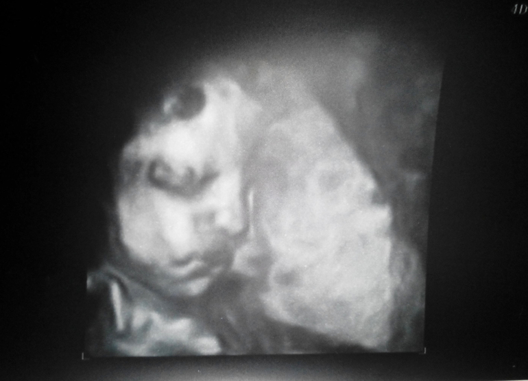 Наш мальчик уже соответствует размерам 31-32 недели, руки-ноги длинные (будет весь в папу, а не в меня-коротышку))). Вес более 1600 гр (знаю, это приблизительно), малыш долбил по датчику изо всех сил, также как стучит по моим рёбрам))). Лицом уткнулся в плаценту, как в подушку, но НС смогла нам сделать фото, пуповину накинул на шею, руку положил между ног и был очень недоволен, что мы его беспокоим. Пухленькие губки поджаты, уголки губ опущены (такое же серьёзное выражение лица было у дочки, когда я впервые её разглядела, через неделю после родов). А ещё нам подробнейшим образом показали и сфотографировали мошонку сына с яичками, прям вот во всей красе, в 3D. Хотя я не просила и не сомневалась, но папа сидел напряженный, для него это сверхважная информация))).