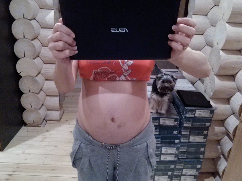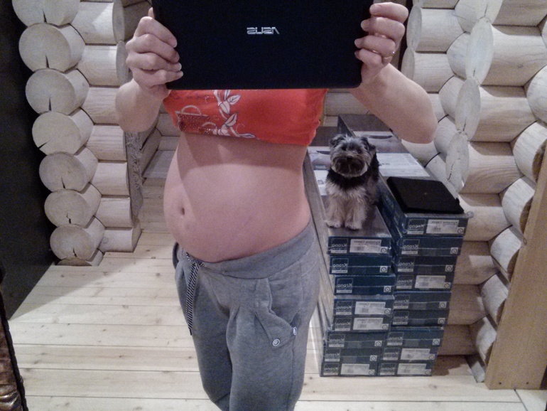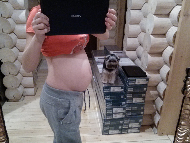 Давно не писала, а особо и не чего:-) все тьфу,тьфу идет своим чередом, ни чего не беспокоит, чесно, я и беременной до сих пор себя не чувствую!!! Сегодня чухнулась,что нам стукнуло 25 неделек и обалдела,как время пролетело:-) блин и особо шевелюх то не чувствую, тихоня у меня моя Виктория, толи так повернулась, толи спит все время, мне даже тревожно, ох,быстрее бы к врачу 10 числа:-) Из не приятного только изжога, без Гевискона не могу, он теперь мой друг! А еще мне кажется и живот не растет, толи мне со стороны не видно, не знаю, фото прилагаю, еще и синий от Клексана. Не смотреть на задний план, привезли сегодня ламинат, ремонт по полной, гнездуемся:-) Всех люблю!