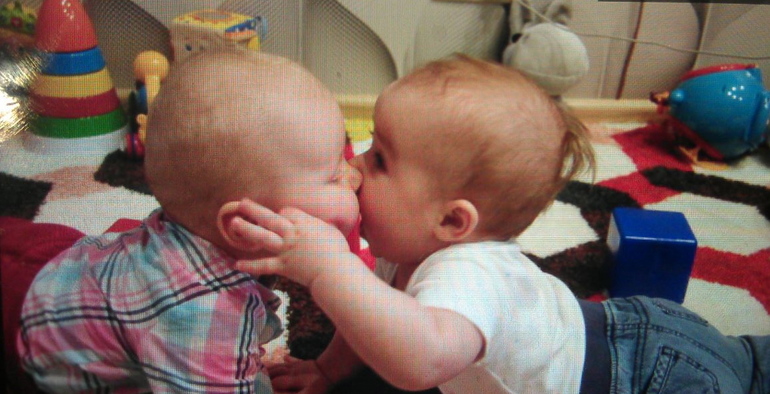 Случайно оборачиваюсь и вижу, что мой сын стоит на ногах, ОДНОЙ рукой держась за междверную перегородку (кафель на полу).