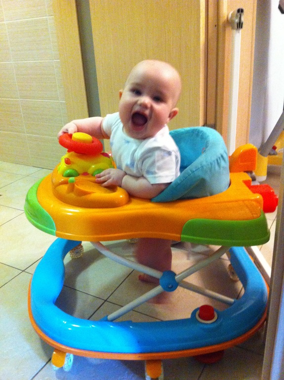 ** не очень любит, но все же иногда разгружает маму, садясь в ходунки