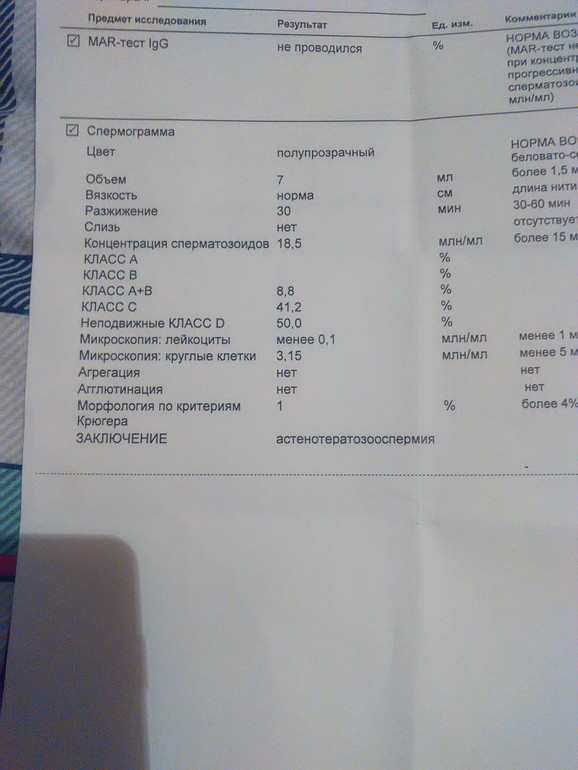 Я вам нестандартный дам коммент ))Сперма по основной версии — у вас ее много, но она полудохленькая.Однако!7 мл (ОГО!) на 18,5 млн в 1 мл = 129 500 000 сперматозоидов в одном эякуляте. По вашему анализу 1% годных — это 1 290 000 шт...Критерий для эко — 50 000 сперматозоидов на 1 яйцеклетку. Или вам хватит на 25 штук!) Есть противники ИКСИ.. Типа, ЭКО натуральнее — есть природная конкуренция. (Тем более, первые ИКСИшные дети дожили только до тинейджеровского возраста, нет статистики), Но есть и сторонники ИКСИ — "доктор самый красивый выберет"..В сухом остатке, в теории, с такой спермой вы можете и сами забеременеть.При любом раскладе, я бы лечила сперму только в параллель.. Возраст и качество яйцеклеток важнее..Для спермы: баня долой, ОРЗ долой, витамин С и аргинин... И не терять время. Приоритет в сторону женского здоровья!Успеха и апчхииииии 21-недельное!)