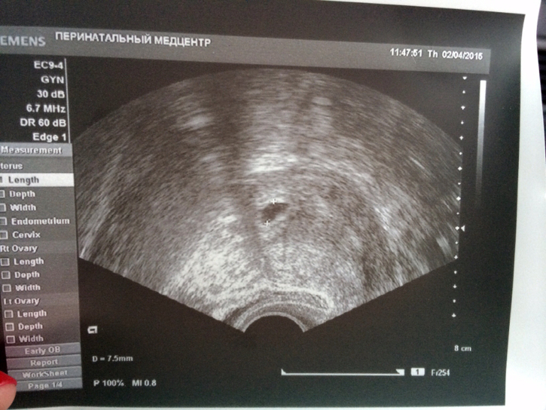 Сегодня 19 дпп одной моей шестидневки 3AC, на узи маточная беременность 4-5 недель, 1 плодное яйцо 7,5 мм, хорион 4,5 мм и желточный мешок 3,1 мм. 18 апреля слушать сердце. Честно сказать, я так долго ждала этого узи, что никаких бурных восторгов или слез на самом узи не было, просто мне было радостно и необычно наблюлать, что теперь все вот так: