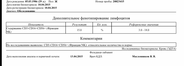 Извините, а Вы сдавали в МЦИК именно: "основные субпопуляции лимфоцитов "? Просто здесь где то в комментах увидела, что важен CD56+ а там его нет. Только если дополнительно достать