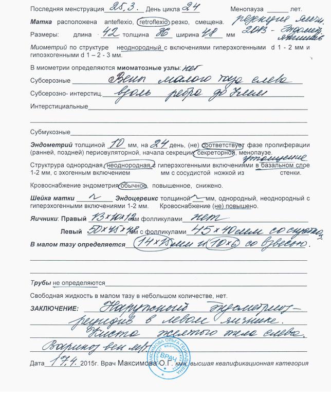 Наверно, сейчас больше мне нужен репродуктолог, кто решится взять меня с очагами Э...оперироваться сейчас я боюсь — боюсь, что совсем останусь без Я. Хотя мысль о ДЯ я принимаю сейчас спокойно, но все же, хочется побороться. С Левшиным я, к счастью, знакома. Именно он мне делал вторую лапару. Левый яичник практически не тронул, несмотря на большой очаг Э на нем. И если я надумаю оперироваться, то конечно же сразу к нему. Спасибо за отзыв!