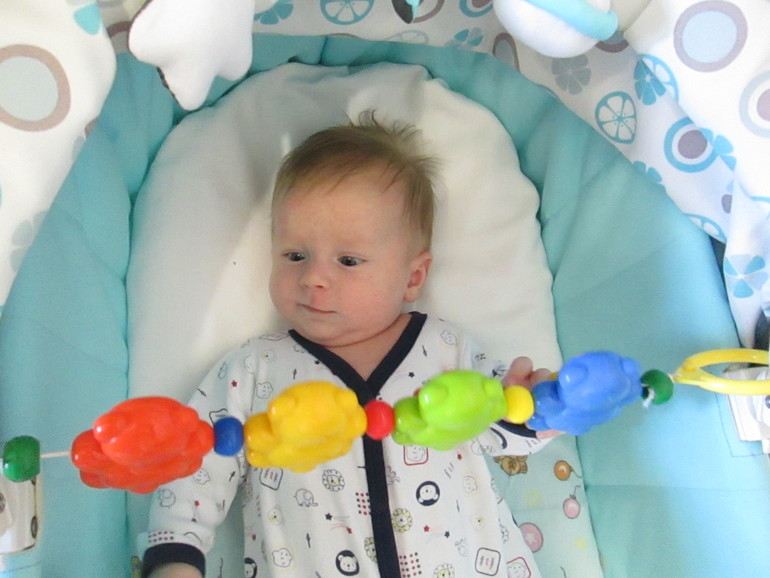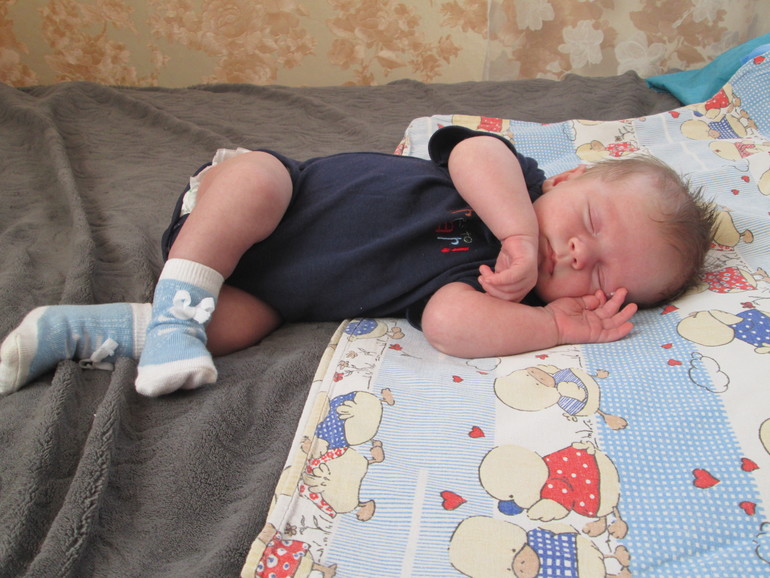Илюшка спокойный и улыбчивый малыш! Быть с ним - одно удовольствие!!! Много агукаем и много улыбаемся! Засыпает сам, я лежу рядом, он глазеет минуты 3 на потолок и глазки закрываются.