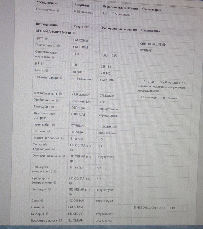 Прокомментируйте результаты анализов