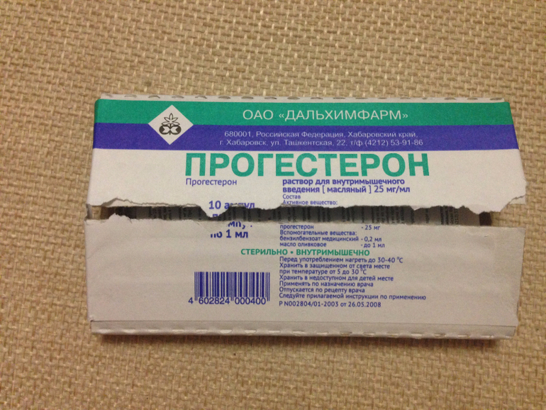 -Прогестерон раствор для внутримышечного введения (масляный) 25 мг/мл. 10 ампул по 1мл. Срок годности до 07/18.