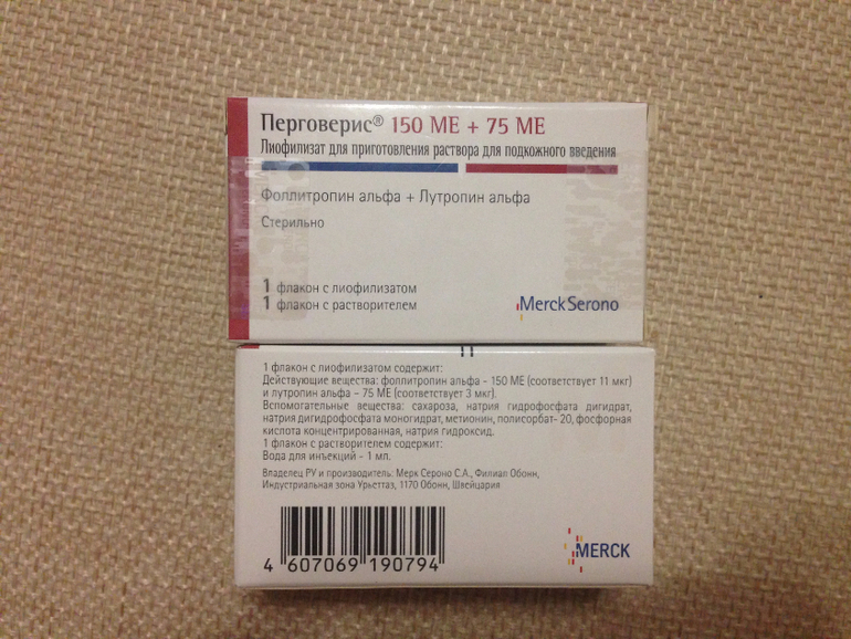 -Перговерис 150МЕ+75МЕ (1 флакон с лиофилизатом + 1флакон с растворителем) 2 упаковки. Срок годности до 11/2015.
