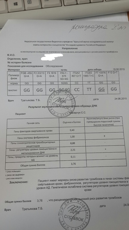 Гемостаз (+ИГ и ЛИТы)Ну вот и пришли мои мутации генов системы гемостаза, к гематологу записалась на 13.08. Девочки посмотрите, может кто что скажет полезного.