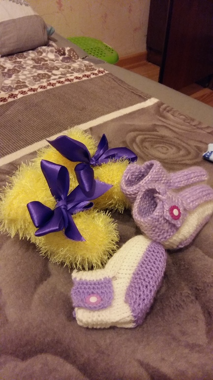 получили вчера наши первые пинетки) Их нам связала самая добрая девушка Светлана из Ирбита. Светик, спасибо тебе огромное за подарочки, конфетки тут же племяша забрала. Так приятно до слез, дай Боженька тебе и всей семье здоровья, благополучия и конечно же малыша))) Мы тебя очень любим)